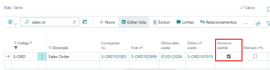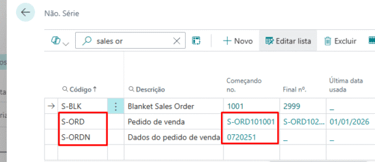 Número de série para criar uma ord. de venda manual ou a partir da cotação de venda (fazer pedido)