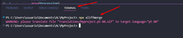 Após a compilação do projeto, será criada automaticamente a pasta Translations, contendo o arquivo base (*.g.xlf).