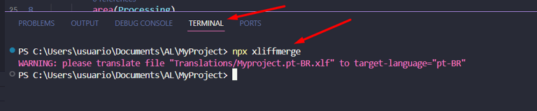 Durante o desenvolvimento, novos textos são adicionados, alterados ou removidos. Para evitar a perda de traduções existentes, utilizamos o xliffmerge, responsável por consolidar o arquivo base gerado pelo AL (*.g.xlf) com os arquivos já traduzidos.
